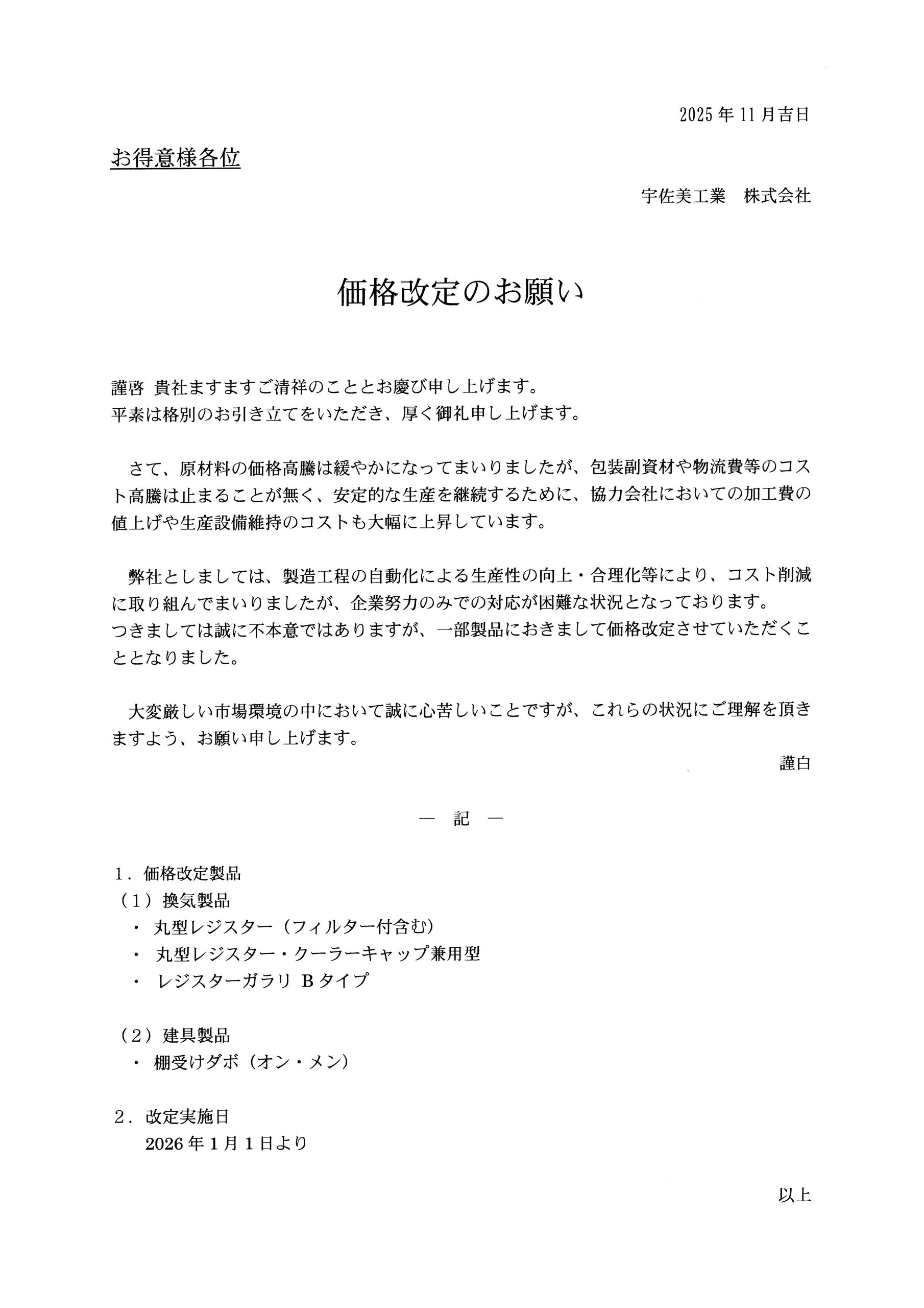上記の価格改定により、総合カタログvol.7.2の製品において価格が変更になっております。 詳細は下段の「新定価表」を参照願います。 また、ホームページの各製品の定価は新定価となっております。