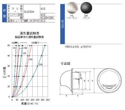 自然給排気スタンダードタイプ。 特定防火設備対応ダンパー(FD式)は別注にて承ります。
